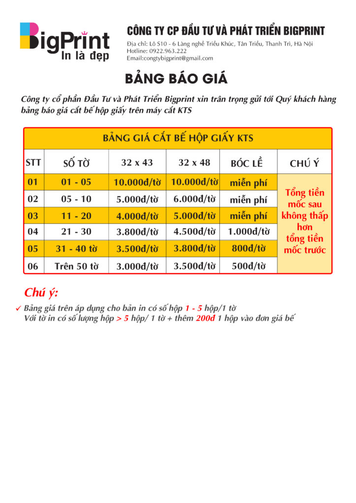 Bảng giá cắt bế hộp giấy
